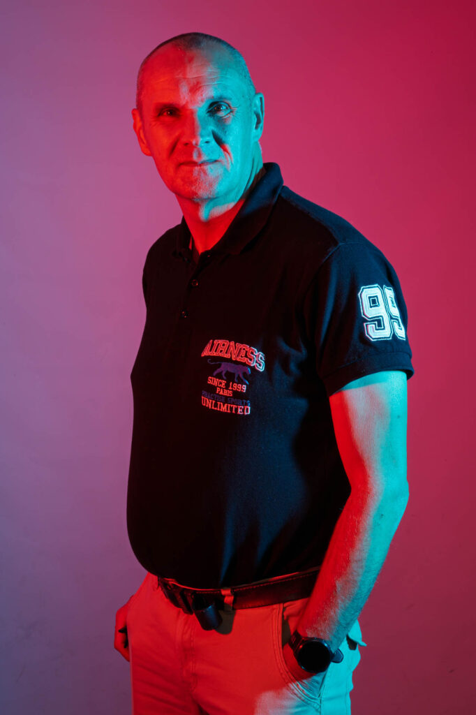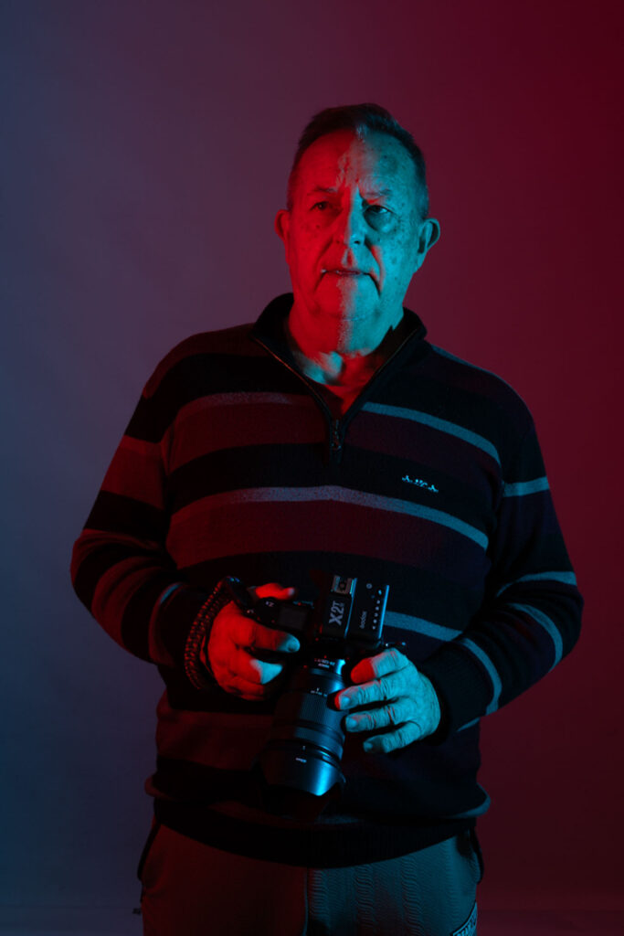 Bruno, Guy et Cédric ont récemment réalisé des essais de flash studio en utilisant des gélatines rouges et bleues.